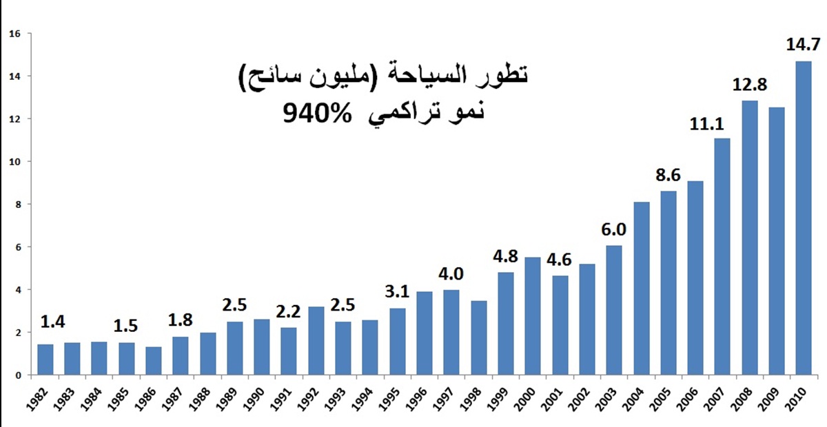 وتُظهر معدلات التوافد السياحي على مصر قبل ثورة يناير 2011، وفقًا لبيانات الجهاز المركزي للتعبئة العامة والإحصاء، أن “عام 2010 ذروة السياحة في الدولة”.