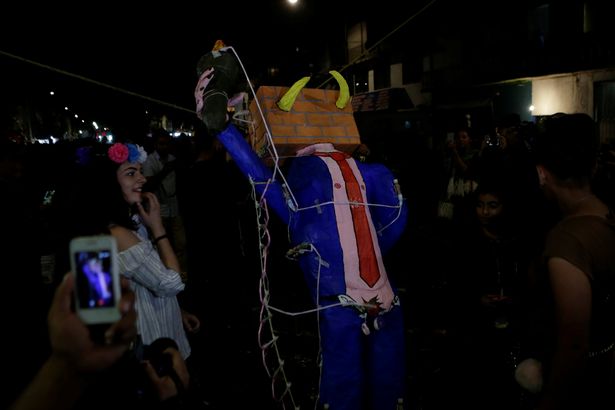 واجتمع السكان المكسيكيون أمس في احتفالية ضخمة، وقاموا بحرق تمثال يمثل الر ئي الأميركي دونالد ترامب، معتقدين انه رمزا للشر.