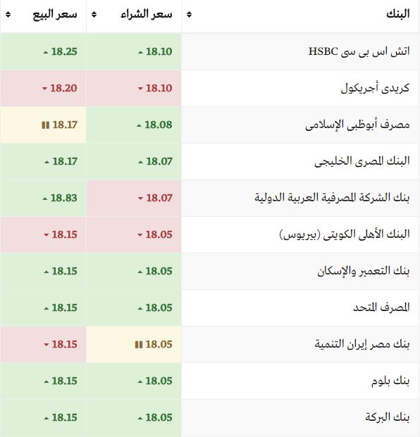 والجدول التالي يوضح أسعار بيع وشراء الدولار بعدة بنوك:
