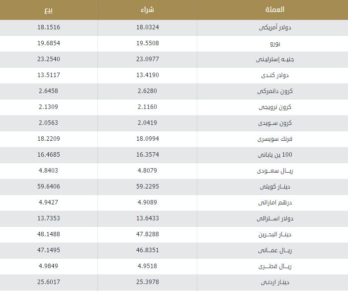 الجدول التالي يوضح أسعار العملات العربية والأجنبية في البنك المركزي: