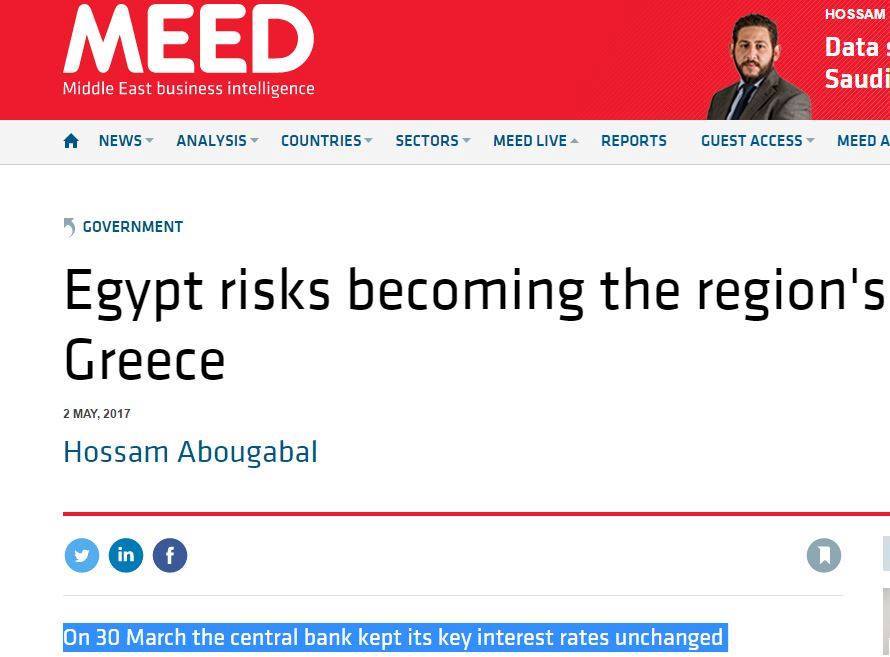 ميدل إيست بيزنس: التحركات الاقتصادية في مصر تقودها لمصير”اليونان”
