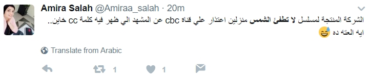 نشرت فضائية “إكسترا نيوز” في خبر عاجل، اليوم، اعتذار من الشركة المنتجة للمسلسل الرمضاني “لا تطفئ الشمس”، وذلك بسبب مشهد ظهر فيه عبارة “cc خاين” على إحدى الحوائط .