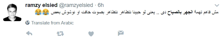وتهمة الجهر بالصياح العام جاءت في المادة 102، والتي تقول: «كل من جهر بالصياح أو الغناء لإثارة الفتن يعاقب بالحبس مدة لا تزيد عن سنة وبغرامة لا تزيد عن 200 جنيه».
