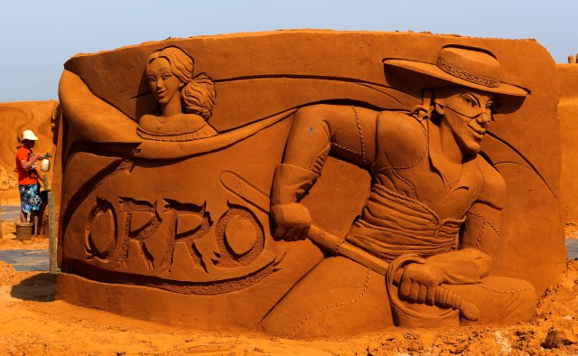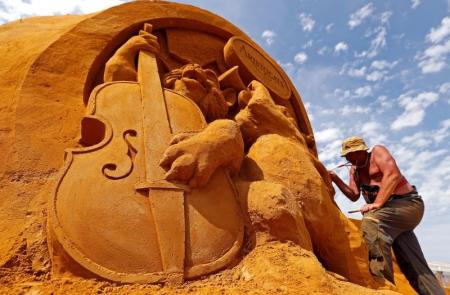 وقال الفنان الروسي سيرجي زابلاتن لرويترز “ما أحبه في الرمال هو أنه ينبغي عليك توخي الحرص الشديد وأنت تقوم بالنحت. أنا أنحت أيضا أعمالا على الجليد وعند مقارنة الرمال بالجليد فإن الرمال هشة للغاية”.