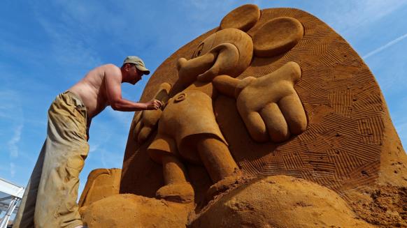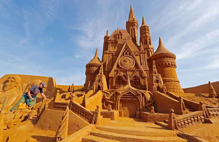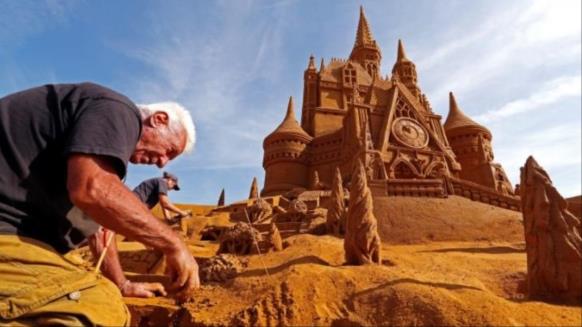 بالصور..  شخصيات مشهورة بأكبر مهرجان للنحت على الرمال في العالم