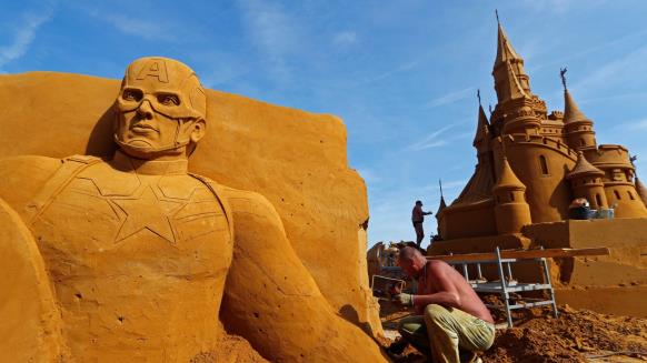 واستخدم عدد من الفنانين في بلجيكا، شاطئا ليكون معرضا لأعمالهم الفنية، التي يصنعونها من الرمال، والتي ضمت شخصيات شهيرة ورسوم متحركة غاية في الجمال.