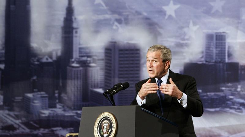 وبطريقة مماثلة، فعل بوش الأمر نفسه في العراق؛ إذ قال في مقابلة مع المؤسسة الوطنية للديمقراطية في عام 2005: «لم يكن هناك أيّ عمل من جانبنا سوى ضد الراديكالية الإسلامية»، ففي أثناء ذروة الهجمات الأميركية على العراق استخدم الدعايا ضد الإرهاب المتدفق عبر سوريا وإيران لزيادة الدعم لما يقوم به، وأضاف الكاتب: «بوش لم يكن مخطئًا تمامًا: لقد ساهمت سوريا بالفعل في عبور الجهاديين إلى العراق؛ مما دفعه إلى إعادة إرسال المشتبه بهم إلى دمشق، حيث تعرضوا إلى التعذيب بشكل كامل».