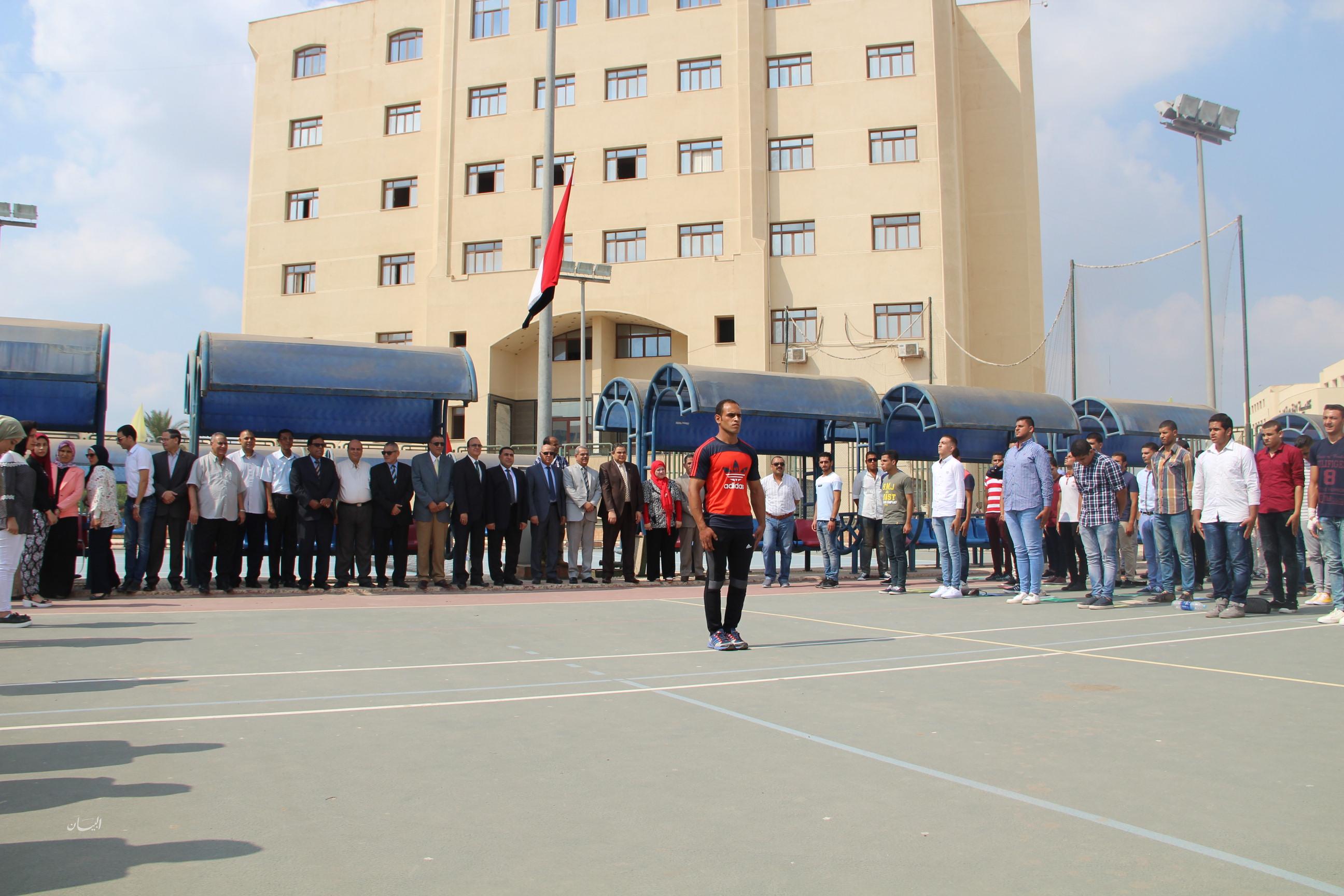 طلاب جامعة كفر الشيخ يؤدون تحية العلم