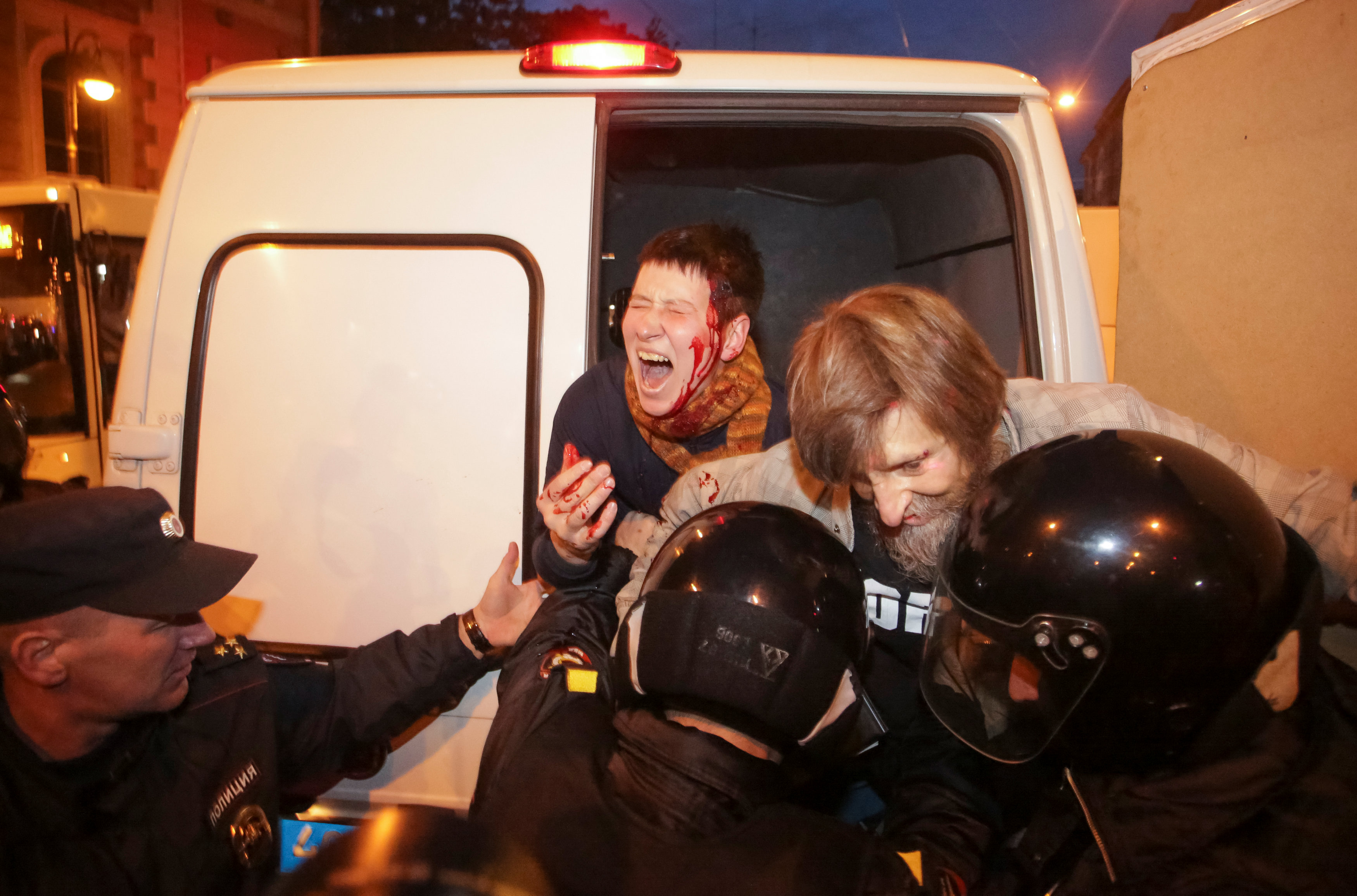 ونقلت وكالة «رويترز» للأنباء عن شاهد عيان قوله إن الشرطة الروسية اعتقلت ما لا يقل عن عشرة محتجين صوب الشارع الرئيس في سان بطرسبرج.