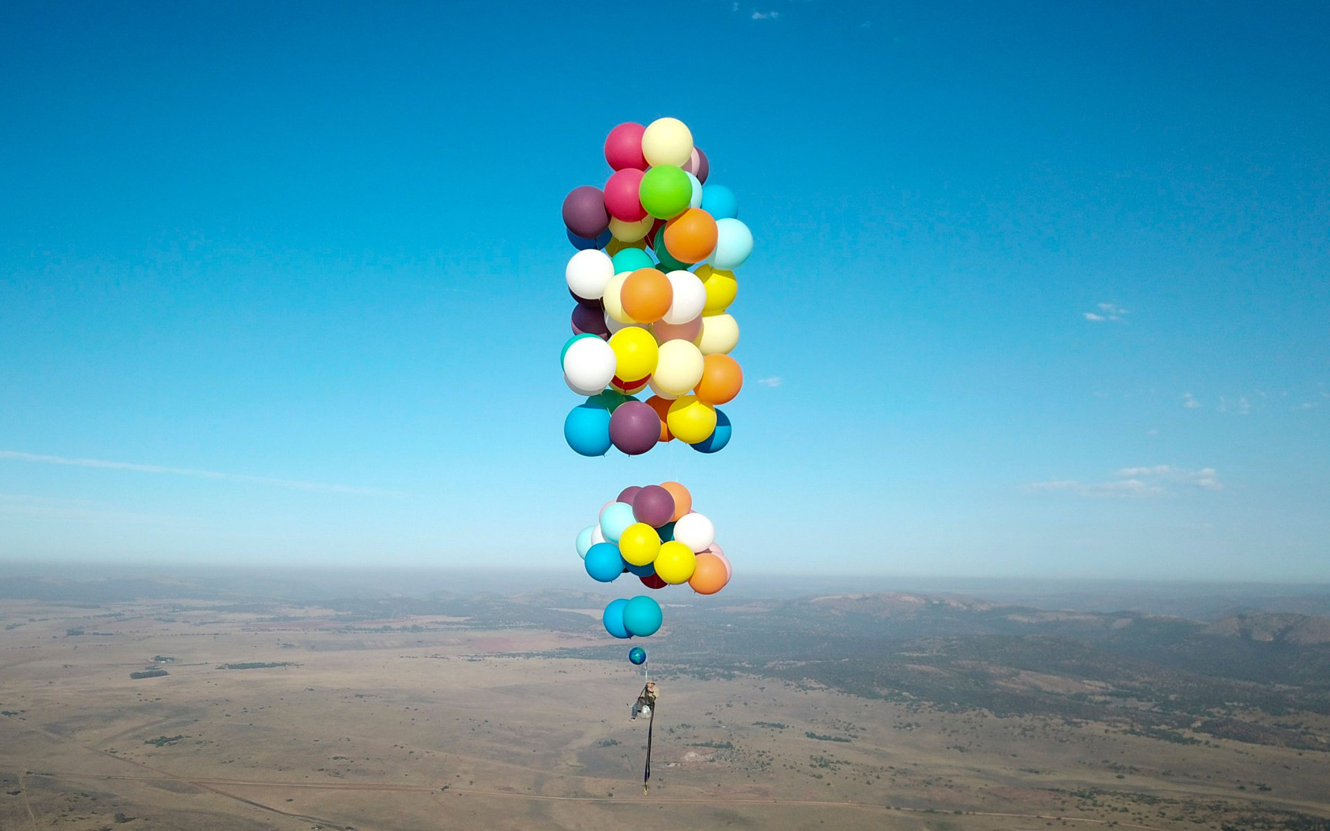 استطاع مغامر بريطاني الطيران على ارتفاع نحو 24 كيلومتر فوق جنوب أفريقيا باستخدام 100 بالونة هيليوم على غرار فيلم (UP)