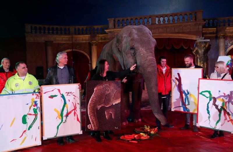 أعلن سيركٌ مجريٌّ متجوّل بيع لوحات صنعتها أنثى فيل هندية تحب الإمساك بالفرشاة وتجيد الرسم بها، في مزاد رسمي.