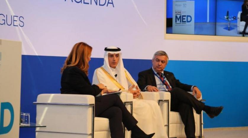 وزير الخارجية السعودي عادل الجبير أثناء كلمته في منتدى حوار المتوسط بروما