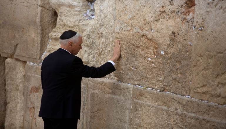 واختتم بنس زيارته، بفعل مماثل لما عمله الرئيس الأميركي حيث زار حائط البراق، بعد خطاب وصفته صحيفة «إسرائيل اليوم» بـ«التاريخي والأكثر ودية تجاه إسرائيل» من بين كل الخطب التي ألقيت في الكنيست.
