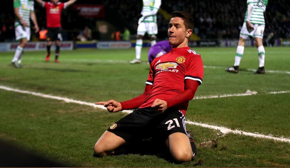 هيريرا يحتفل بهدفه في مباراة يوفيل تاون ومانشستر يونايتد