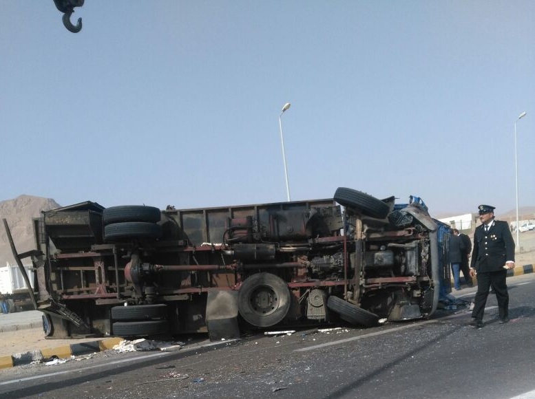 بالصور.. مقتل أربعة سجناء أجانب وإصابة 13 في انقلاب سيارة ترحيلات بسفاجا