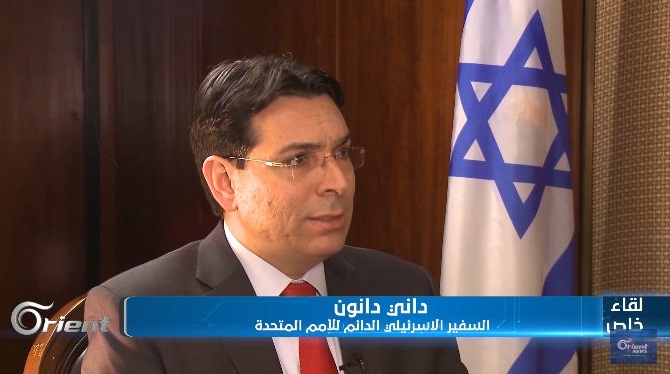 نحو مزيد من التطبيع مع الاحتلال الإسرائيلي، استضافت قناة «أورينت» السورية المعارضة، التي تبث من إمارة دبي الإماراتية، مندوب الاحتلال الصهيوني الدائم في الأمم المتحدة «داني دانون» في لقاء خاص أجرته الإعلامية السورية «هيفي بوظو».