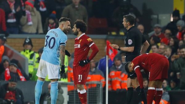 محمد صلاح وأوتامندي من مباراة ليفربول ومانشستر سيتي