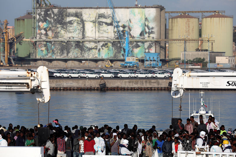 مهاجرون في ميناء كاتانيا بإيطاليا يوم الأربعاء