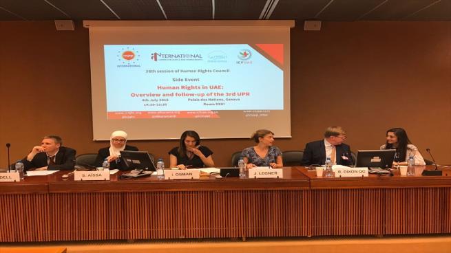 وأحاط المتحدثون الحضور بالانتهاكات القانونية التي تشهدها الإمارات، أثناء الندوة، التي عقدت على هامش الجلسة الـ38 لمجلس حقوق الإنسان التابع للأمم المتحدة، وفق ما أوردته وكالة “الأناضول”.