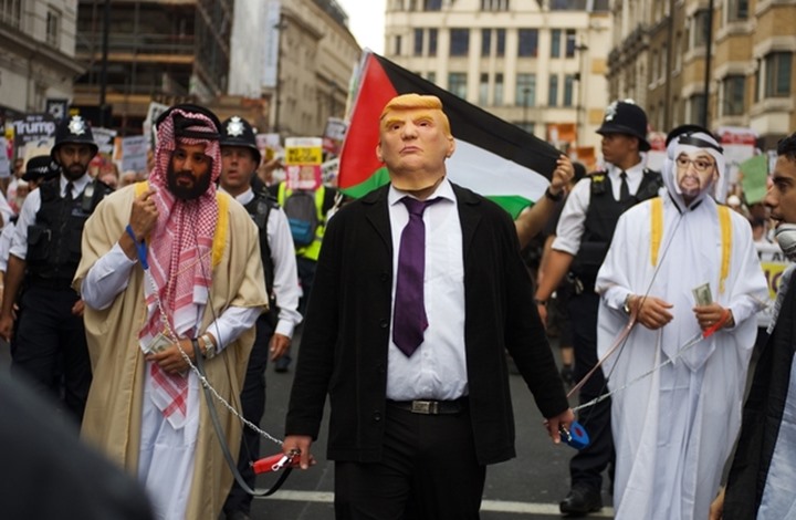 ونظرا لمعرفتهم بما فعله ترامب مؤخرا، انضم المحتجون المسلمون إلى آلاف المتظاهرين في قلب العاصمة البريطانية لندن؛ للتنديد بوجود رئيس الولايات المتحدة الأمريكية في البلاد.