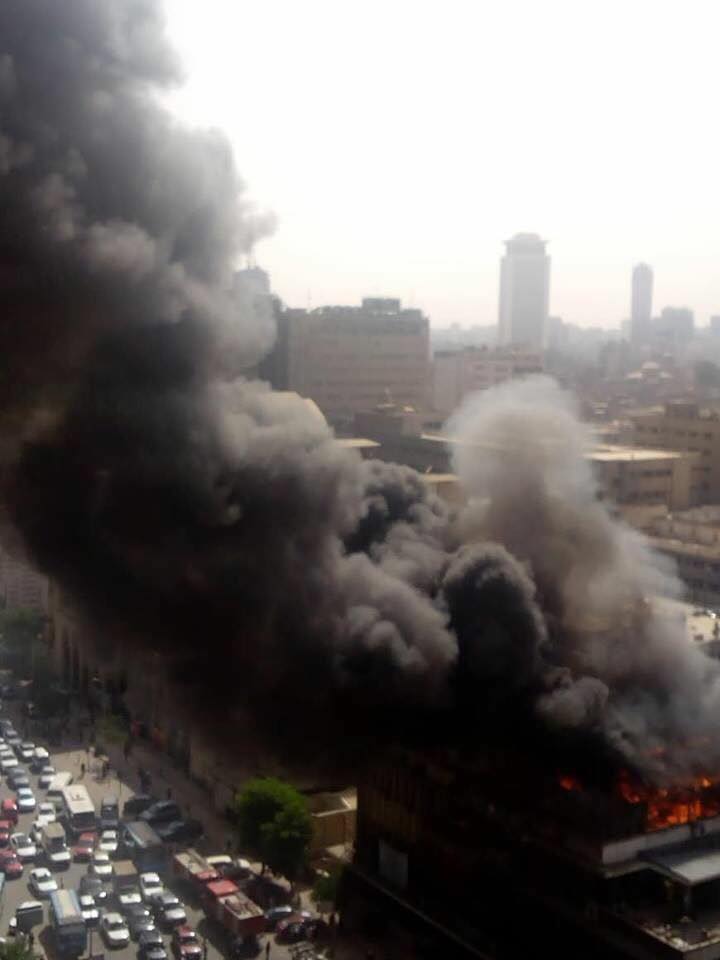 حريق ضخم في مبني نقابة التجاريين والبنك الأهلي بشارع رمسيس وسط القاهرة