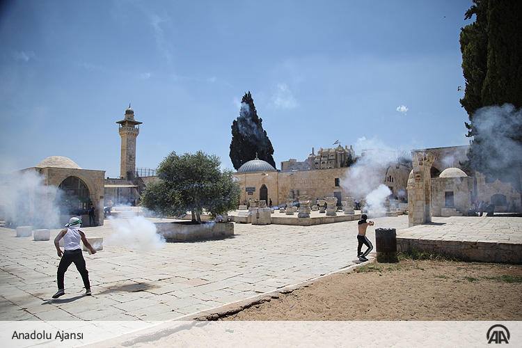 وقال اشهود عيان لوكالة الأناضول أن قوات الشرطة المتواجدة عند باب المغاربة في الجدار الغربي للأقصى، أطلقت قنابل صوت باتجاه المصلين.