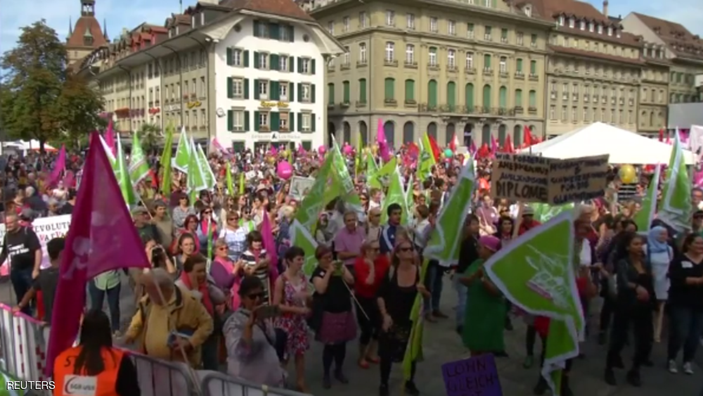 خرج ما يقرب من 20 ألف شخص، معظمهم نساء، السبت، في برن السويسرية، احتجاجا على عدم المساواة في الأجر بين النساء والرجال، وهددوا بإضراب نسائي إذا لم تتم تلبية هذا المطلب.