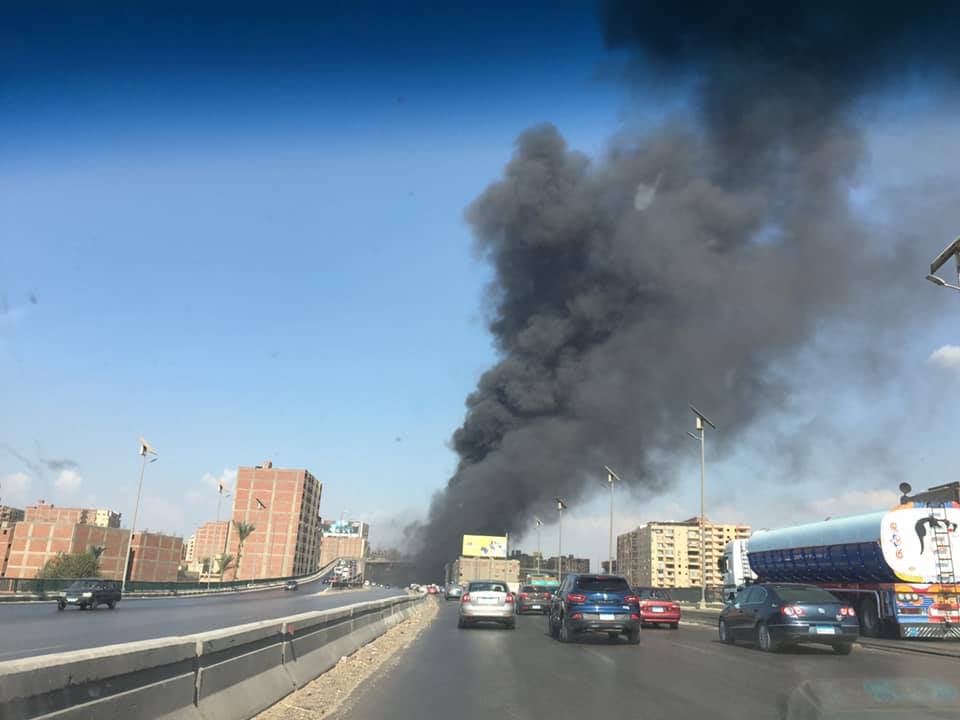 حريق هائل يلتهم مخازن اشغالات الطريق بحي الهرم اسفل الطريق الدائري المريوطية