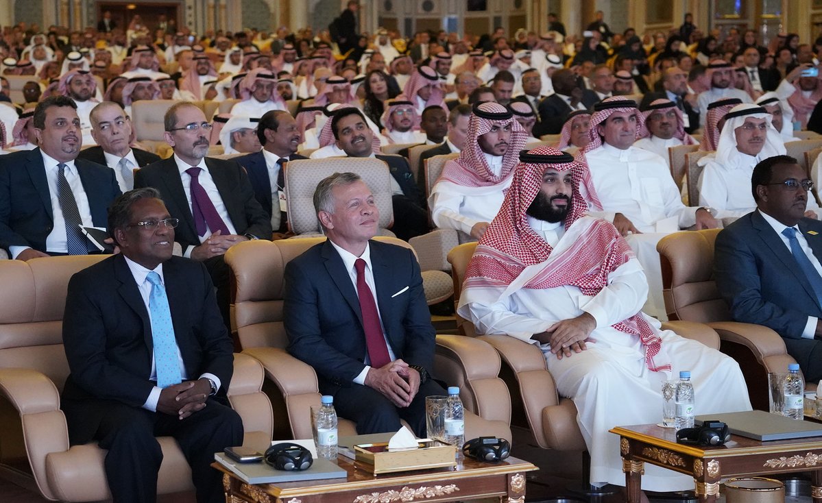 ظهر ولي العهد السعودي الأمير محمد بن سلمان، لمدة دقائق معدودة، برفقة العاهل الأردني الملك عبدالله الثاني، ضمن أعمال «منتدى مستقبل الاستثمار»، بالعاصمة السعودية الرياض، قبل مغادرته دون إلقاء كلمته المقررة.