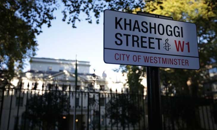 وأطلق ناشطون وصحافيون حملة لتغيير اسم شارع نيو هامبشاير، أمام السفارة السعودية في واشنطن، إلى اسم «طريق جمال خاشقجي»، في محاولةٍ لإحراج السلطات السعوديّة التي لم تكشف بعد عن جثّة الصحفي المقتول.