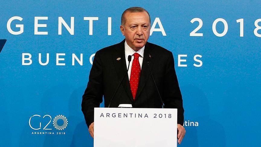 وأضاف أردوغان، خلال حديثه بمؤتمر صحفي بمقر قمة العشرين في الأرجنتين، «لن نطمئن حتى يتم الإعلان عن الجهة التي أمرت بالعملية وهذا الإعلان من مصلحة السعودية».