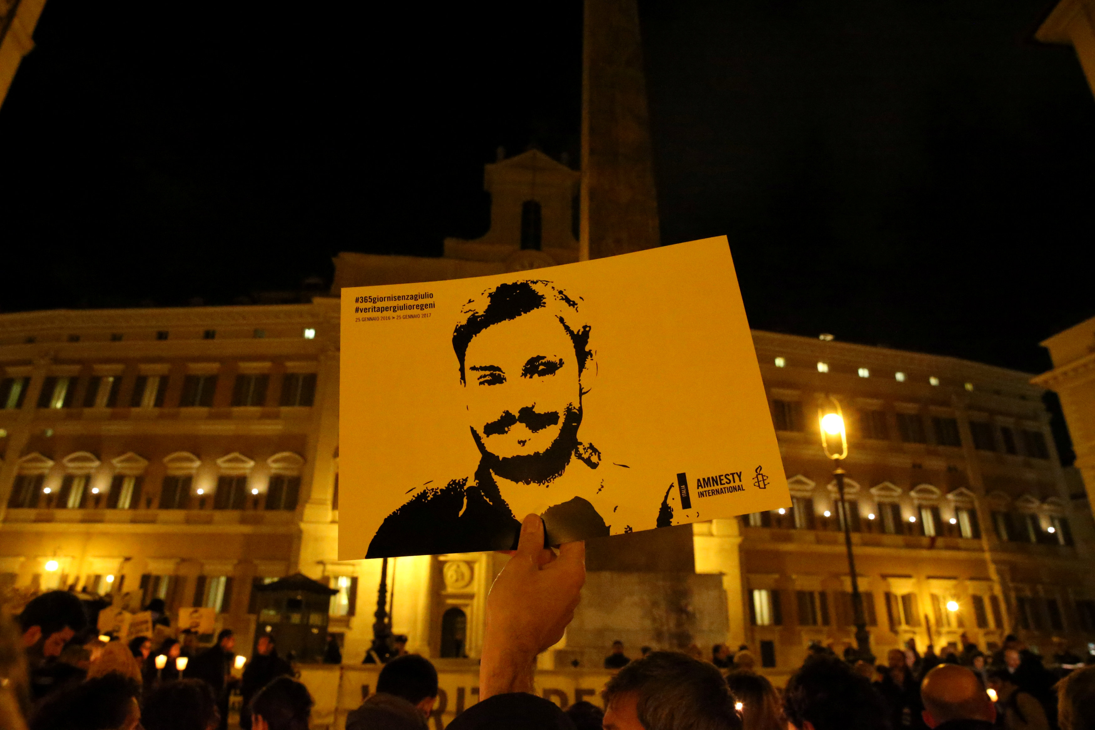 وكان ريجيني اختفي في يوم 25 يناير 2016، وعُثر على جثته وبها آثار تعذيب، على طريق صحراوي ناءٍ خارج القاهرة، في الرابع من فبراير من العام نفسه، ما أثار شكوكاً بأن الضباط المصريين كانوا متورطين في اختفائه ومقتله.