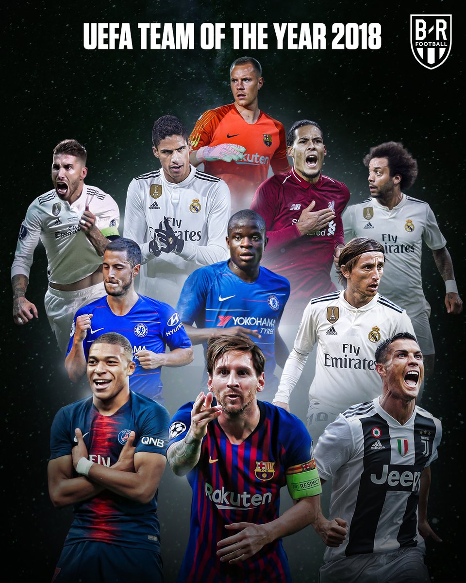 وفي الدفاع، راموس، وفاران والهولنديي فان دايك (ليفربول)، ومارسيلو، بينما يلعب في خط الوسط، مودريتش، والبلجيكي إيدين هازارد، والفرنسي نغولو كانتي (تشيلسي)، في الوقت الذي يقود فيه الهجوم مبابي وميسي ورونالدو.