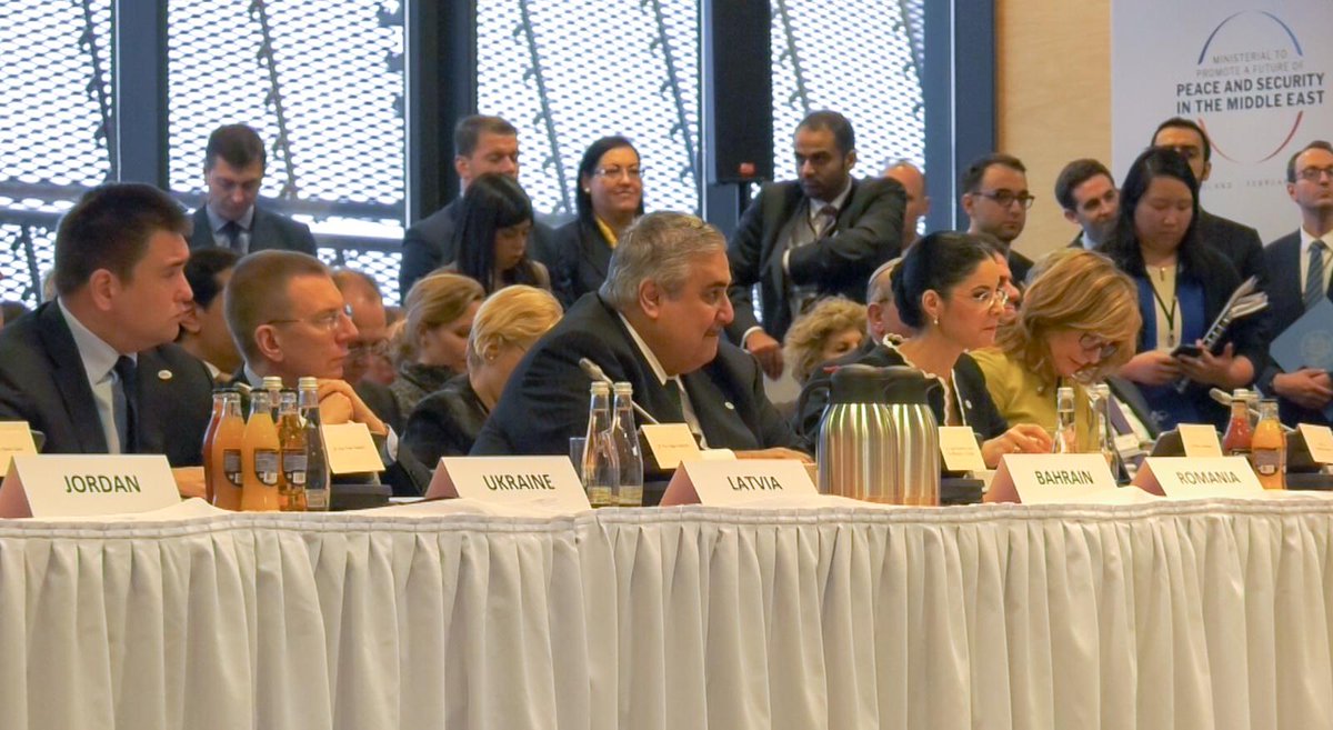 والمقطع خاص بإحدى جلسات مؤتمر وارسو الذي عقد بالعاصمة البولندية على مدار يومين، ويظهر فيه وزير الخارجية البحريني ونظيره الإماراتي عبد الله بن زايد، ووزير الدولة للشؤون الخارجية السعودي عادل الجبير.