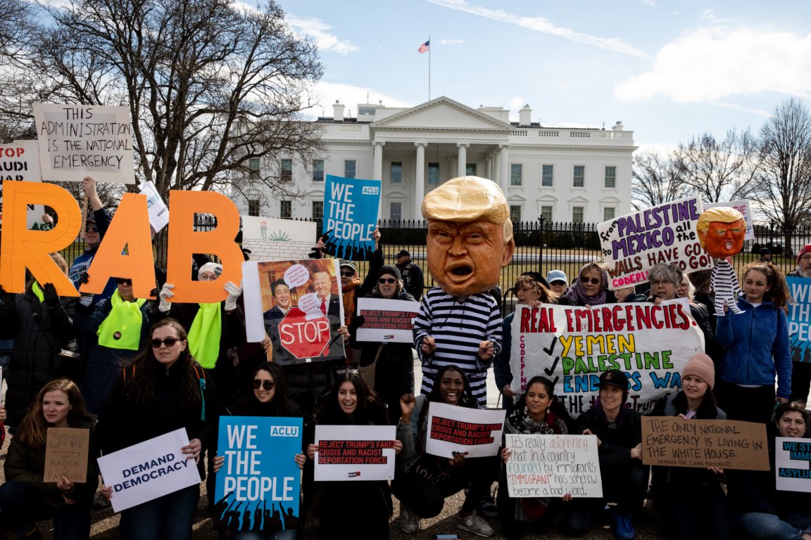 المتظاهرون ذكروا في تصريحات مختلفة أنهم احتشدوا أمام البيت الأبيض؛ للتعبير عن احتجاجهم ورفضهم لقرار الرئيس الأميركي بخصوص إعلان «حالة الطوارئ» الذي اعتبروه «تجاهلًا للكونجرس، وسوء استخدام للسلطات».