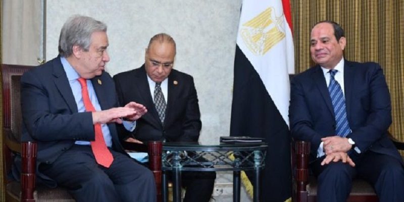 وأشار إلى أن “الأمين العام في طريقه إلى القاهرة حيث سيلتقي عبد الفتاح السيسي ووزير الخارجية سامح شكري”.