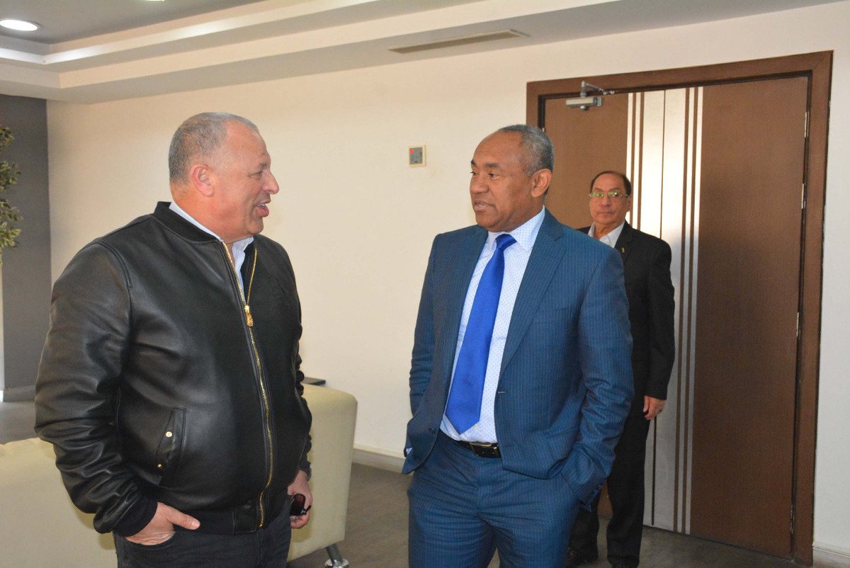 كان رئيس الكاف، في زيارة لباريس، لحضور مؤتمر الاتحاد الدولي لكرة القدم الذي أعيد فيه انتخاب جياني إينفانتيو لفترة ولاية ثانية في رئاسة الفيفا.