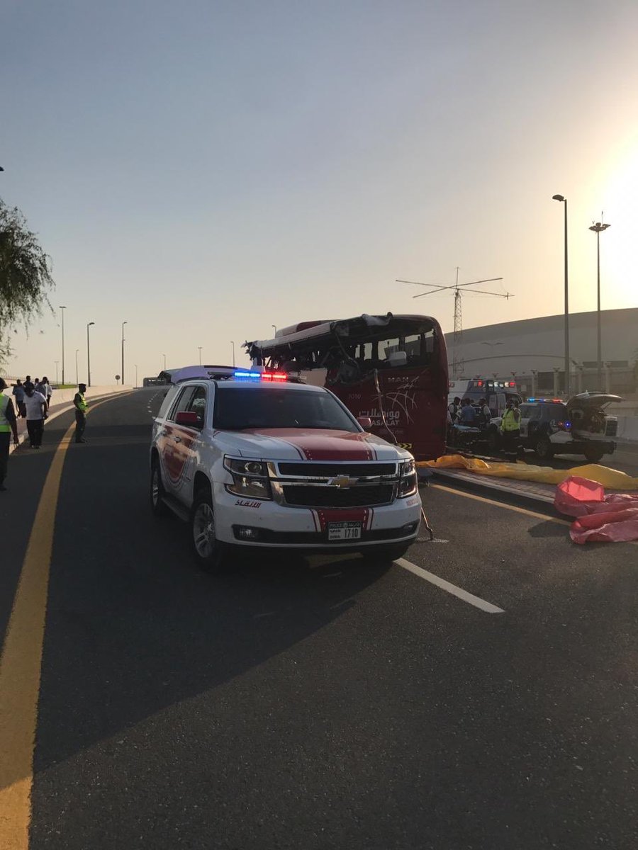 وأسفر الحادث عن وفاة 17 بينهم امرأة مجهولة، وإصابة آخرين بإصابات حرجة، بجانب إصابة متوسطة تعرض لها السائق (عماني الجنسية) وفق شرطة دبي.