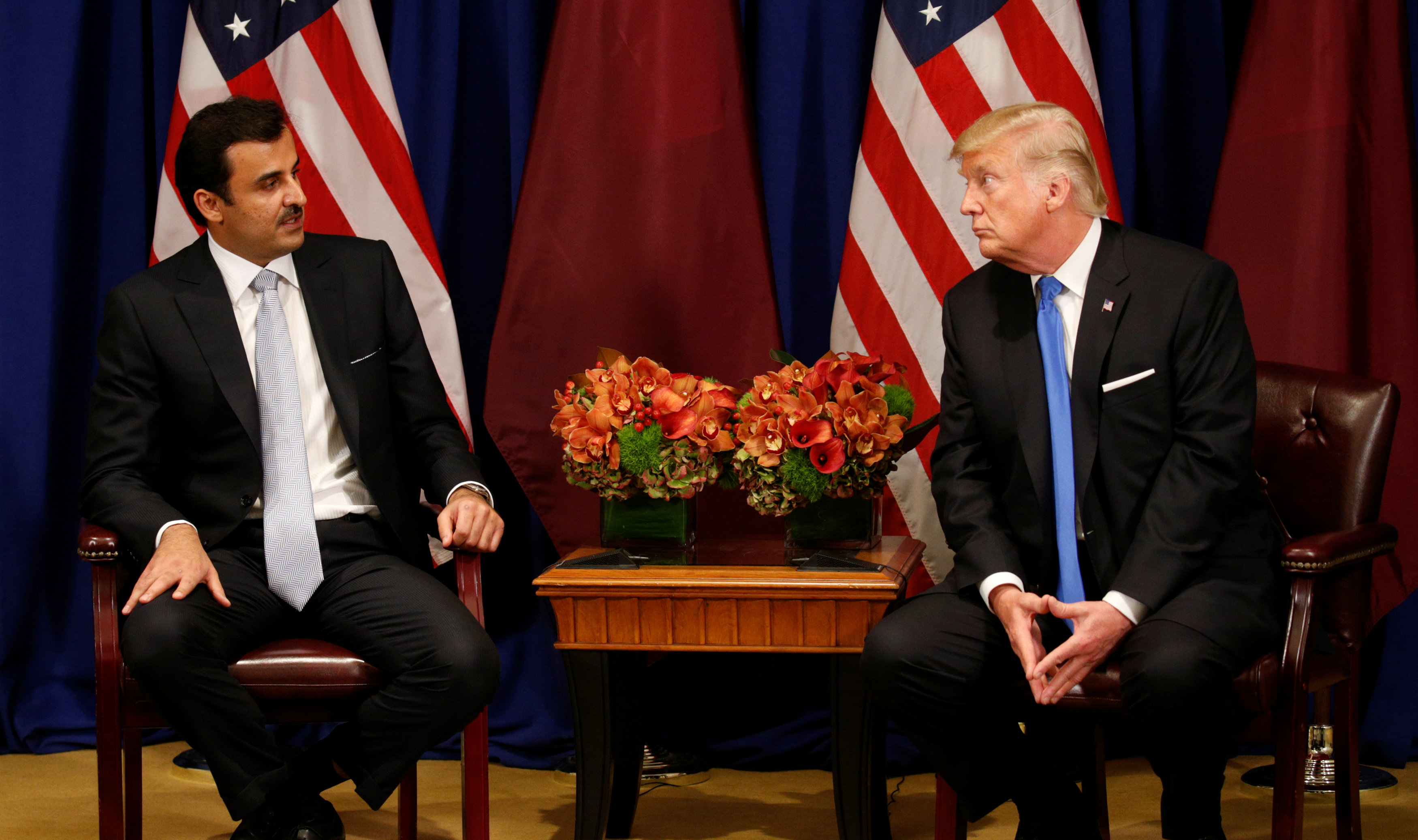 وخاطب ترامب أمير قطر أثناء كلمة ألقاها على مأدبة عشاء، مساء الاثنين، قائلا: «أنت حليف عظيم، وساعدتنا بمنشأة عسكرية رائعة، ومطار عسكري لم ير الناس مثيلا له منذ وقت طويل».