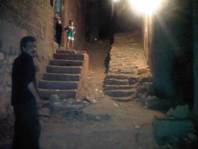 والتقينا أيضا بشاب اخبرنا إن المشاكل الحقيقة أعلى قمة الجبل ومضينا اتجاهه في صعوبة شديدة، في الوقت الذي وجدنا فيه الأطفال من حولنا صاعدين بمنتهي السهولة فهو أسلوب حياتهم ، وقابلنا سيدة عجوز وترفقها سيدة آخرى للغاية تنزل السلالم  ذاهبة للطبيب .