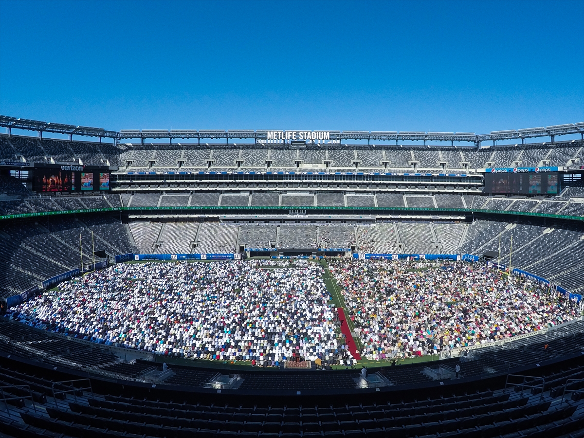أدى آلاف المسلمين في ولايتي نيويورك ونيوجيرسي، الأحد، أول صلاة عيد أضحى في ملعب «ميتلايف» الشهير بنيوجيرسي شمال شرقي أميركا.
