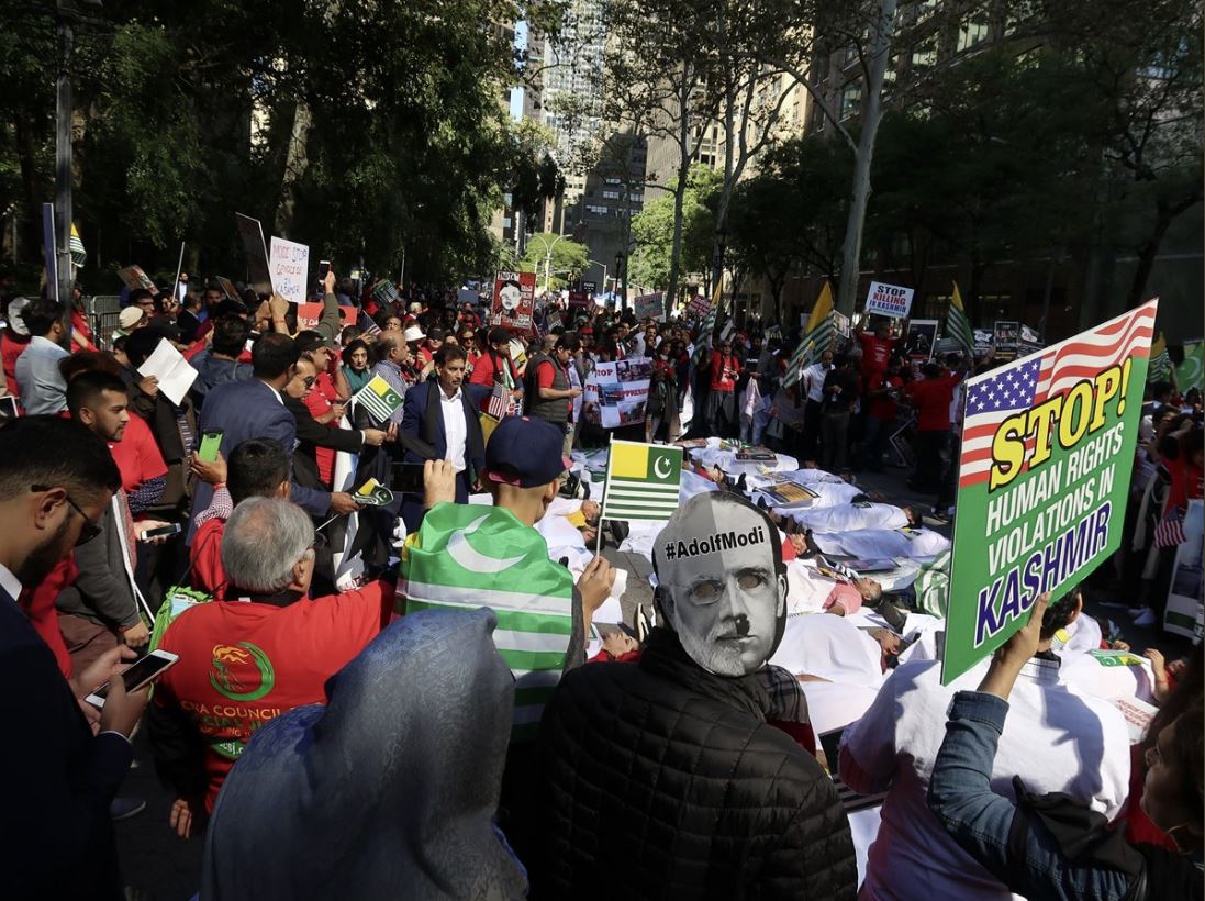 نظّم مجلس كشمير بالولايات المتحدة الأميركية تظاهرة أمام مقر الأمم المتحدة بنيويورك، تحت شعار «اليوم الأسود لكشمير».