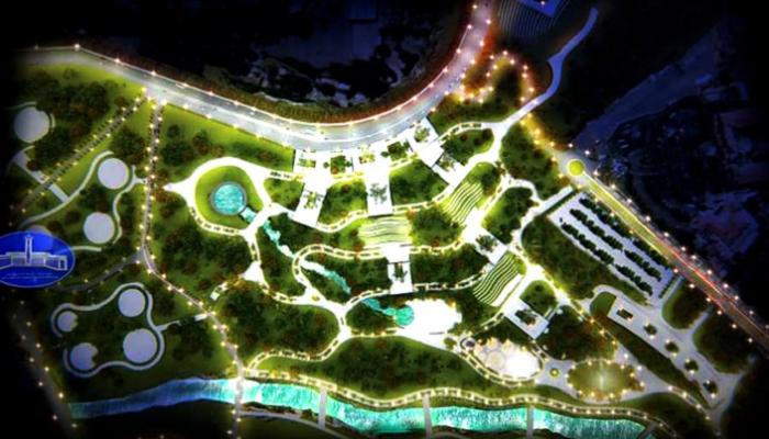 ويتميز بمساحة مفتوحة للترفيه وبحيرة اصطناعية ومكان لحفلات الزفاف على مساحة 42 مترًا مربعًا أمام أحد فنادق العاصمة.