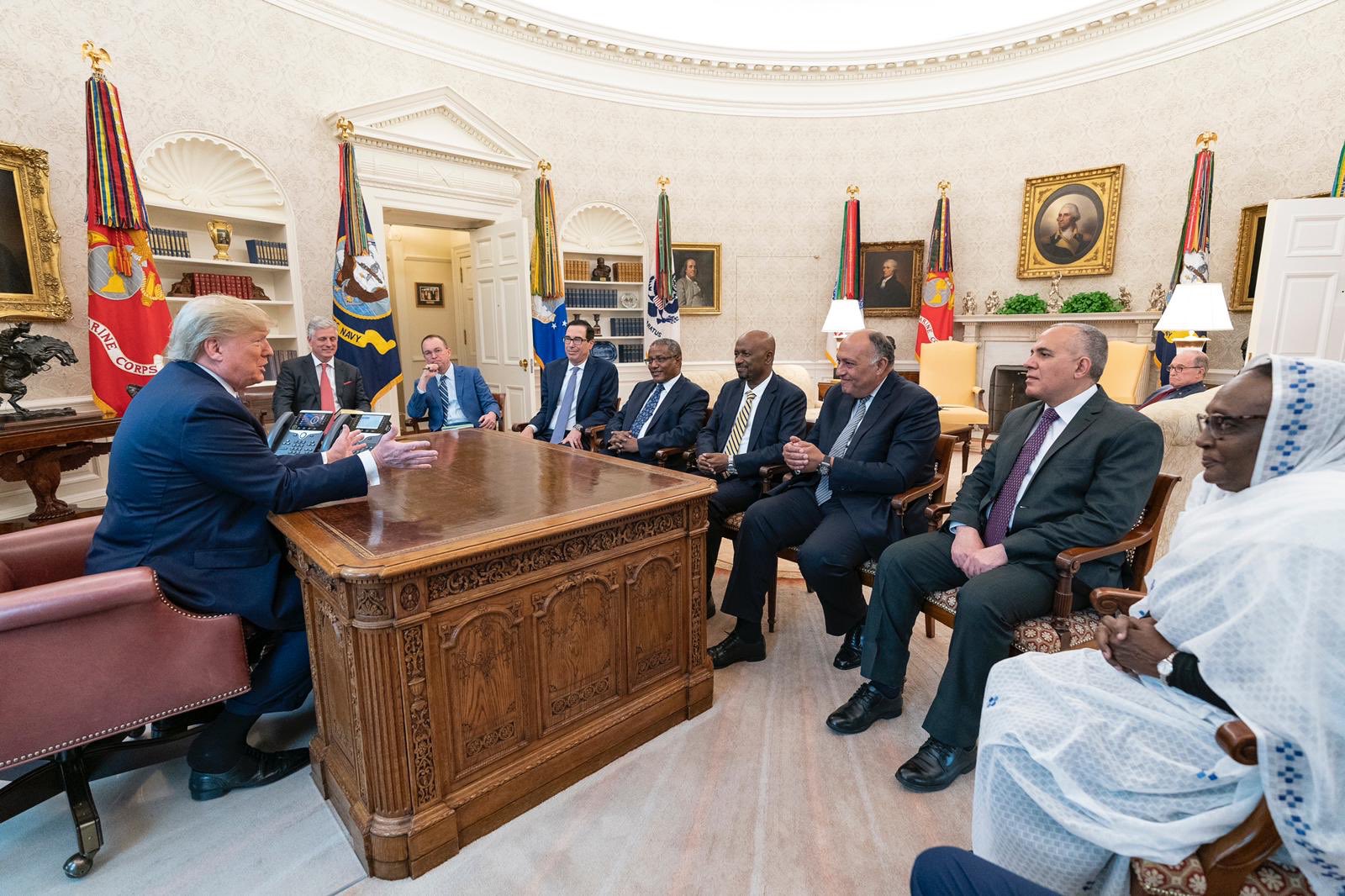 وقال بيان البيت الأبيض إن ترامب بحث مع الوفد التطورات الأخيرة حول «سد النهضة»، وعبّر عن دعمه للتفاهم بين الأطراف.