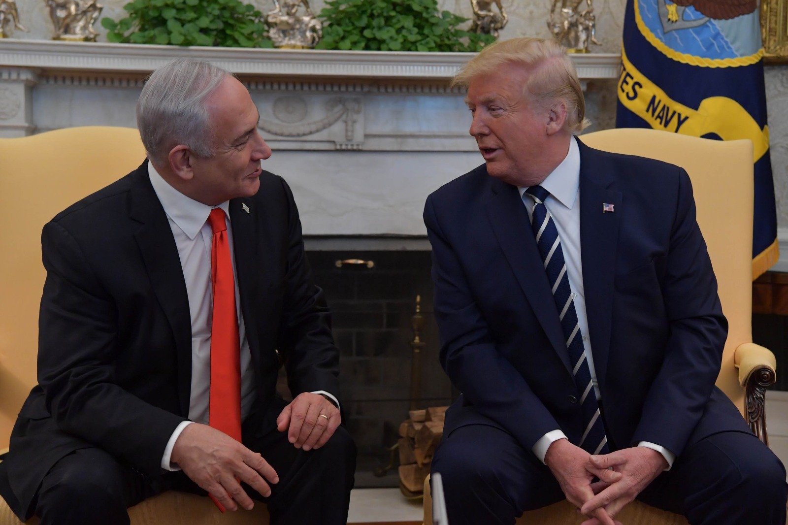 جاء ذلك خلال لقاء جمع ترامب ورئيس وزراء الاحتلال الإسرائيلي المنتهية ولايته بنيامين نتنياهو في البيت الأبيض، بحسب مبعوثي قناة «كان» الرسمية العبرية إلى العاصمة واشنطن.