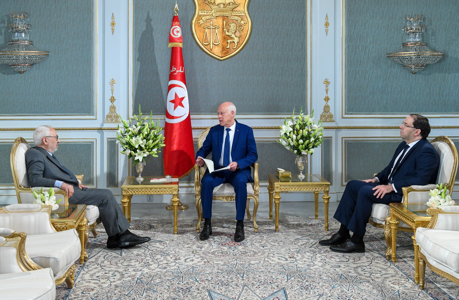 وأكد بيان صادر عن الرئاسة التونسية، أنه استقبل، اليوم الاثنين، رئيس البرلمان راشد الغنوشي ورئيس حكومة تصريف الأعمال السيد يوسف الشاهد.