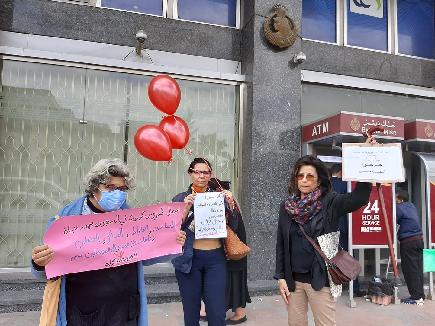 وحملت الأسرة خلال الوقفة لافتات كُتب عليها: «إهمال فيروس كورونا في السجون يهدّد حياة المساجين والضباط والعساكر، والعاملين وعائلاتهم والمتعاملين معهم، والمجتمع كله.. أخرجوا المساجين».