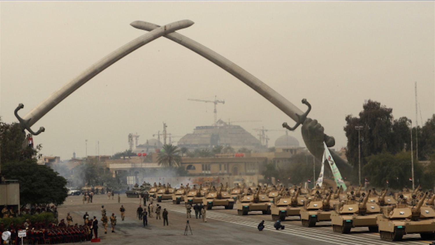 ثم أطيح بتمثال حديدي ضخم لصدام حسين، لكن كان يرافق سقوط بغداد المفاجئ مقاومة واسعة النطاق لقوات التحالف، واضطرابات ضخمة، حيث تم نهب المباني الحكومية بشكل كبير وازداد معدل الجرائم.