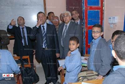 وكان الوزير قد تفقد عدد من مدارس المحافظة بدأها بمدرسة بدر التجريبية ثم مدرسة الوحدة العربية الابتدائية، وناقش المعلمين في المشكلات التي تعاني منها مدارسهم، كما طالب معلمي مدرسة " بدر" بنقل دور الحضانة الخاص في المدرسة إلى مبنى أخر حيث أن المبنى القديم متهالك، وآيل للسقوط ، وناقش الوزير الطلاب في الكتاب المدرسي ومدى استعانتهم به وتلبية احتياجاتهم من التعليم والفهم، كما قدم الوزير عدد من شهادات التقدير لبعض طلاب المرحلة الابتدائية لتميزهم الدراسي.