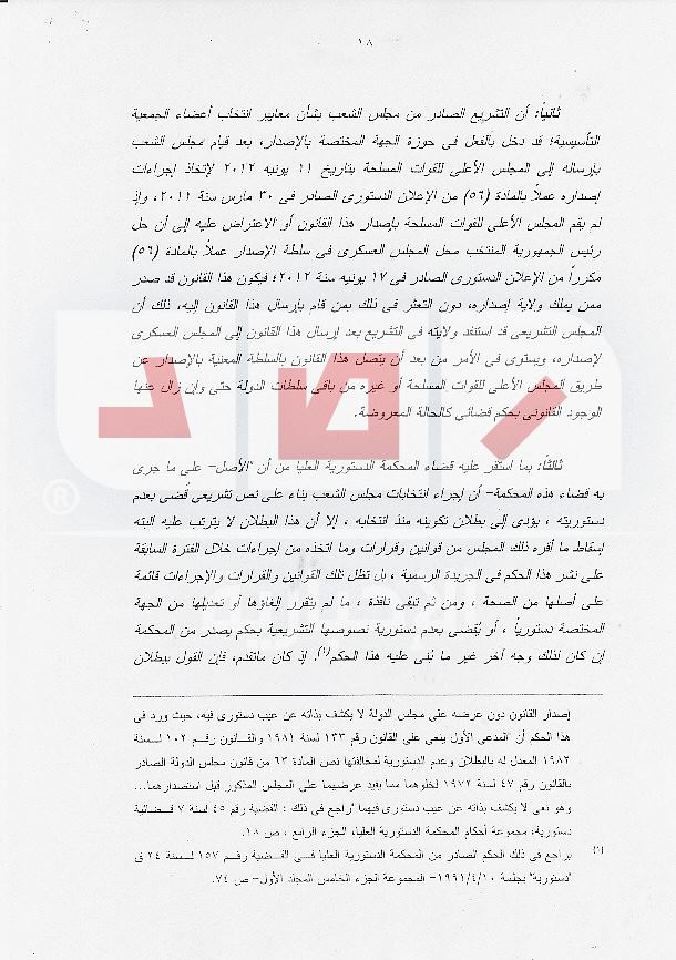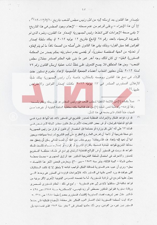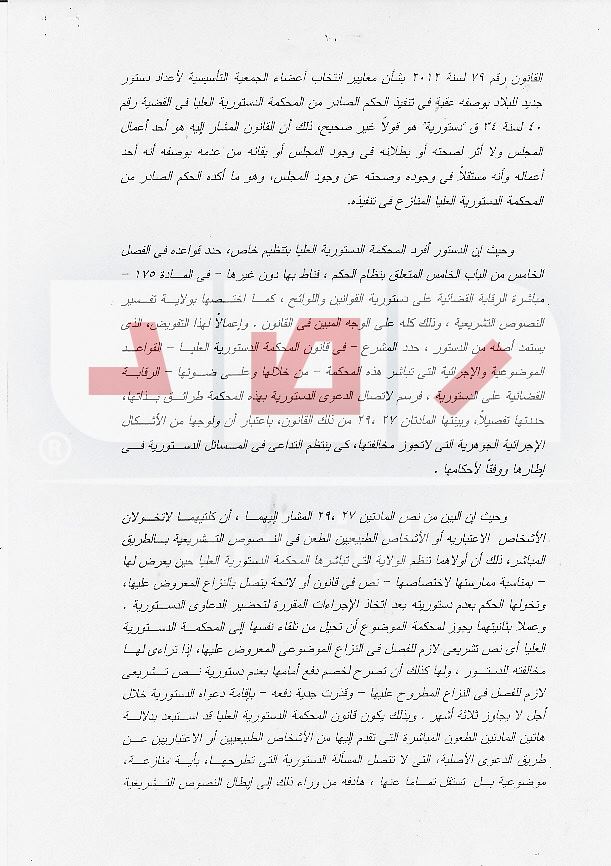 ننشر لكم بالمستندات تفاصيل تقرير هيئة المفوضين والذي انتهى بعدم قبول دعوى بطلان الجمعية التأسيسية